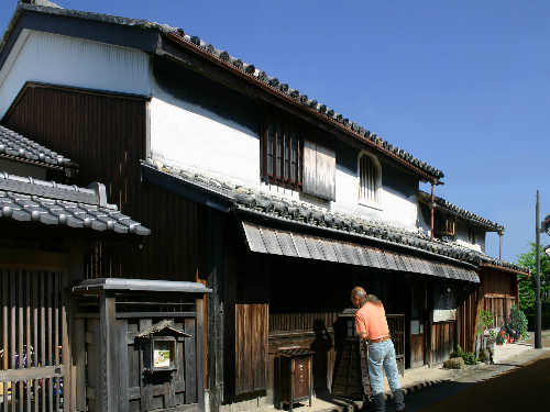 before After フォトショップのレタッチでフォトモンタージュで古い街並み再現です。電柱電線を消し木部(戸袋や板の庇部分を付け足す)カーブミラーなどはアンティークな雰囲気に色調整奥の建物は蔵風に変えてみました。